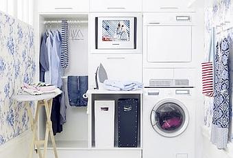 En este cuarto de la plancha han optado por integrar todos los electródomésticos con el estilismo del cuarto, incluso la televisión.