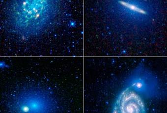 Imagen de alta resoluciónEstas imágenes fueron se elaboraron a partir de observaciones realizadaspor los cuatro detectores infrarrojos a bordo de WISE. Los colores azul y cian representan la luz infrarroja en longitudes de onda de 3,4 y 4,6 micras, que corresponde principalmente a la luz de las estrellas. Los colores verde y rojo representan la luz de 12 y 22 micras, que corresponde mayoritariamente a la luz emitida por el polvo caliente. Crédito: NASA / JPL-Caltech / UCLA