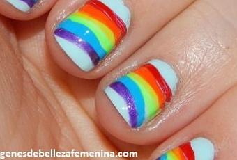 Vemos este primer modelo de uñas en el que se ha hecho un arcoíris en cada una de las uñas, este diseño es muy fácil de hacer, pueden hacerlo en casa y se divertirán mucho al hacerlo lo mejor es que está de moda para niñas, aquí te dejaremos algunos modelos de uñas de niñas.