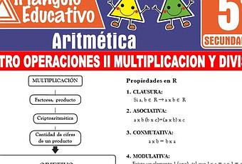 Aquí hallaras GRATUITAMENTE el siguiente material sobre Cuatro Operaciones II Multiplicación y División preparado especialmente para los estudiantes de Quinto de Secundaria. Este contenido se desarrolla en el curso de ARITMÉTICA y te lo compartiremos GRATIS en formato PDF.