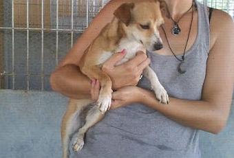 Arya hembra, de 1.5 años, de 6kg de peso, es muy buena y muy obediente, pero lo pasa muy mal en la perrera. Hay demasiados perros y está obligada a compartir jaula con los más grandes que no la dejan comer.