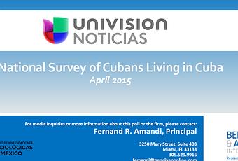 La Encuesta Bendixen & Amandi para Univision Noticias/Fusion en colaboración con The Washington Post es el sondeo más extenso realizado por una empresa encuestadora independiente en territorio de Cuba desde 1959 y da a conocer la opinión actual del pueblo cubano sobre las relaciones entre Cuba y EE.UU., el sistema político y económico cubano, el futuro de la isla, y otros temas