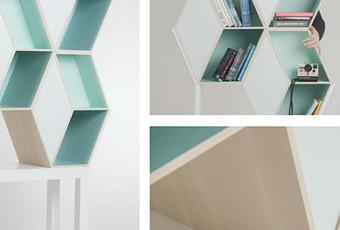 Cubious es una estantería geométrica diseñada por Kristina Lindqvist. De inspiración neoclásica, en madera natural y lacada en verde menta y blanco fué presentada en la Stockholm Furniture Fair 2013.