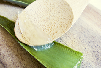 *Cortar las hojas por la mitad y con la ayuda de una cuchara extraer el jugo y colocarlo en un recipiente de cristal. Podéis ayudaros con un mortero o batidora para acabar de extraerlo mejor.