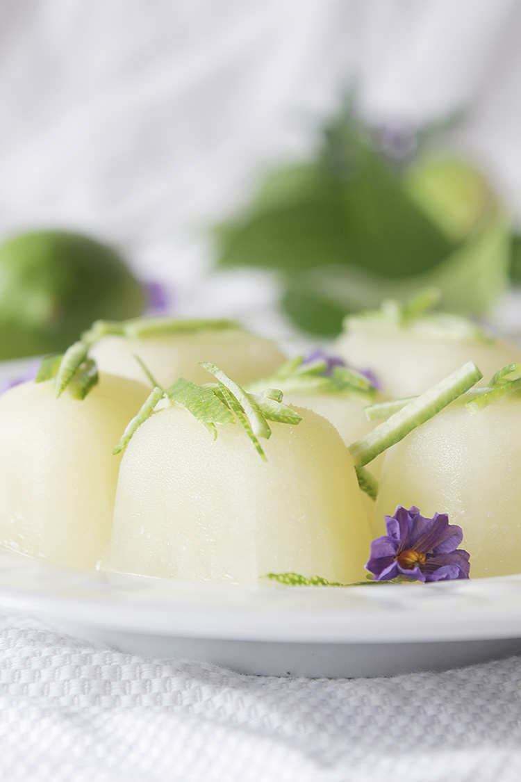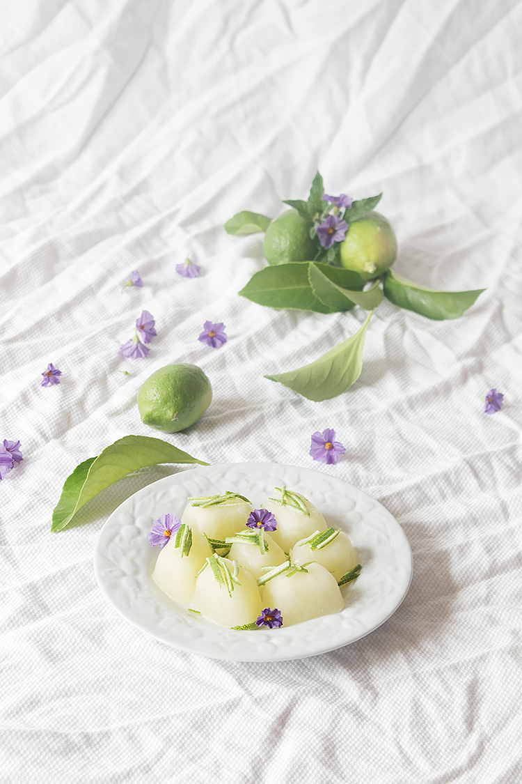 Yo no lo hice porque mi madre los preparó y no me acorde de decírselo. Así que por eso os lo presento con la lima en juliana encima de los cubitos dulces de limón.