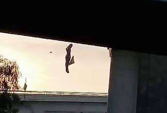 San Luis Potosí.- Dos muñecos fueron encontrados colgados de los resguardos del Distribuidor Juárez, los cuales asemejaban una persona ejecutada.