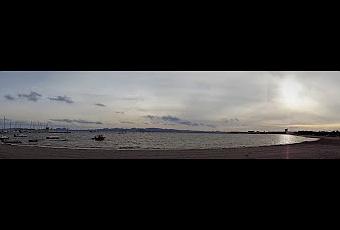 Desde la orilla, mientras llega la noche, contemplo el agua.