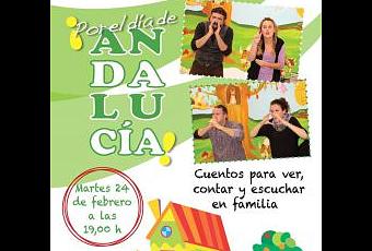 Esta tarde, 24 de Febrero a las 19:00 horas en la Biblioteca Pública Municipal “Miguel Delibes” (Montequinto-Dos Hermanas) tendrá lugar, CUENTACUENTOS ESPECIAL SIGNADO ‘¡Por el Día de Andalucía!’, cuentos para ver, contar y escuchar en familia con Recuento Narradores.