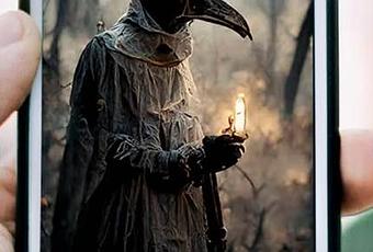 Montaje con la figura de «El médico de la peste»,