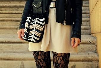 Este fin de semana saqué nuevamente la chaqueta de cuero, en esta ocasión combinada con un vestido crema de Stradivarius que siempre me da mucho juego, y al que le tengo cariño, puesto que fue un regalo. Las medias de encaje, apetecen cada día más. Decidí dar un toque metálico al conjunto con el cinturón de Bershka y el bolso de Blanco, los zapatos de salón de medio tacón son los más cómodos para una larga y relajada caminata. Espero qeu os guste la propuesta.This weekend I pulled back the leather jacket combined in this occasion with a cream dress from Stradivarius that always gives me too many chances, and that I have affection because that was a gift. Lace tights, crave more every day. I decided to give a metallic touch to the set with belt and bag from Bershka and Blanco. Medium heel shoes from Blanco are the most comfortable for a walk. I hope you like it.