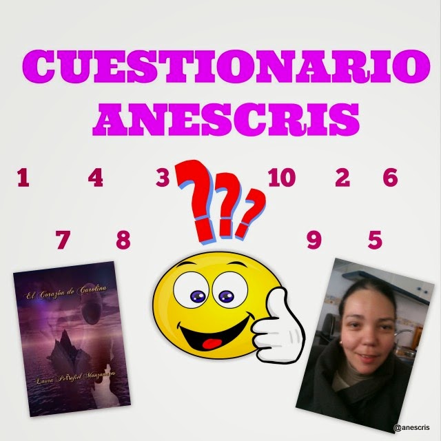 1. Libros públicados: "El corazón de Carolina" en Lulu2. Un libro de tu niñez: "Manolito Gafotas" de Elvira Lindo (1994)3. Un libro que te guste ahora: "Olivia y Jai", de Rebecca Ryman 4. La película que más te gusta: "La Edad de la Inocencia"(1993) de Martín Scorsese5. Música preferida: Cualquier tipo de música está bien, desde Lady Gaga a clásicos como Kiss o Abba o Queen. 6. Deporte preferido a lo mejor no te gusta: Andar 7. Ciudad, campo, playa o montaña: las cuatro cosas a la vez 8. Color que te gusta: Todos los colores9. Un lugar para vivir: Una isla pequeña10. Un lugar que te gustaría visitar que no has ido: La India Gracias a Laura por haber contestado mi cuestionario, y por la foto jejejeje, ella sabe porque se lo digo jejeje, espero muchos éxitos porque se lo merece.