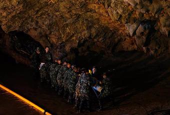 El 3 de julio de 2018 un grupo de siete buzos (incluyendo a un doctor y un enfermero) se introdujeron en la cueva. Las autoridades tailandesas dieron a conocer que los rescatistas aplicaron todos los controles de salud y tratamientos, mantuvieron a los niños entretenidos y alegaron que ninguno de ellos tenía lesiones graves.