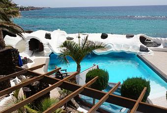 A la llegada lo que más llama nuestra atención es la gran piscina blanca que sirve como centro de atención de todo el complejo. De color blanco, como los diseños de César Manrique en los populares Jameos del Agua o la que fuera su casa y actualmente sirve como sede a la fundación que lleva su nombre, contrasta con el negro de la piedra volcánica natural del terreno y el azul transparente parece más claro si cabe. Por detrás de la misma se forma una especie de cueva, un diseño creativo que añade su toque de encanto. Añadido a la piscina, está el mencionado jacuzzi, ideal para las frioleras como quién escribe e ideal para relajarse un rato.