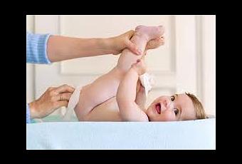 Acuesta al bebé en una superficie limpia. Le extiendes el cambiador para pañales y retiras el pañal sucio. Utiliza una toallita suave para limpiar toda la parte cubierta por el pañal.