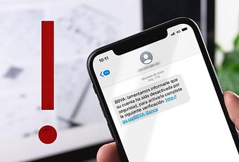 Los ciberdelincuentes están suplantando la identidad de empresas con SMS fraudulentos de supuestas anomalías en cuenta, intentos de acceso, devolución de importes... con un enlace clicable. Desde BBVA nunca te enviaremos SMS con enlaces, ni te pediremos claves o datos personales.