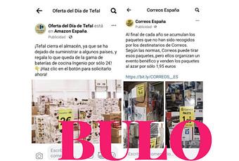 En este caso se trata de un anuncio de Tefal y/o de correos en los que presuntamente de que están "regalando" una batería de cocina por tan solo 2 euros y en el caso de Correos que esta vendiendo paquetes que no han sido recogidos por 1,95 €.
