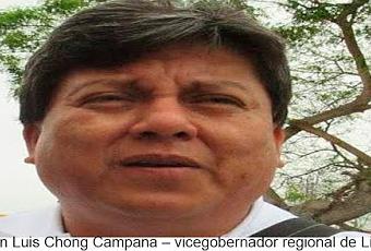 Vice gobernador Juan Luis Chong Campana - llama la atención a Vicente Sánchez Vásquez. Desde su cuenta oficial de Facebook le exigió no poner en riesgo la gobernabilidad en Lima provinciasJuan Luis Chong Campana – vicegobernador regional de Lima - cuestionó el comentario hecho a través de las redes sociales por el asesor PNUD del GORE-LIMA, Vicente Sánchez Vásquez en contra del ex mandatario regional – Javier Alvarado Gonzáles del Valle a quien tildo de malhumorado por pronunciarse en torno a los supuestos vicios ocultos encontrados en la construcción del nuevo hospital cañetano.
