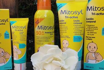 Mitosyl Tri-active proporciona a las pieles atópicas de los bebés un efecto similar al de los corticoides, por lo que evita la inflamación al mismo tiempo que alivia las molestias típicas de este tipo de pieles. Y Mitosyl Protector Solar formulado con 3 tipos de filtros: inmunológicos, minerales y orgánicos, asegura una protección amplia y muy alta frente a los rayos UVA y UVB