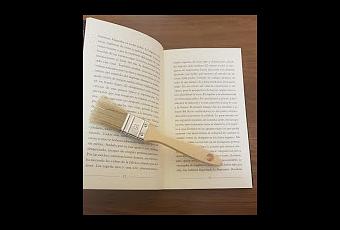Lo primero siempre es limpiar un libro. A poder ser, en seco, es decir, con una brocha suave. Se usa para quitar el polvo de la cubierta, el canto y, algunas veces, en el interior. Si hay una página que empieza a ver su tono cambiado por el polvo o le ha caído algún residuo sólido, lo mejor es utilizar la brocha del centro a los cuatro vértices de las páginas y, en la zona de la bisagra del libro de arriba hacia abajo. Que sea una brocha de cerdas suaves es importante porque algunas hojas de papel pueden verse dañadas, bien por ser tipo biblia, o por la tinta que utilicen. no se puede limpiar de los bordes al centro porque eso doblaría las hojas. Pero, ¿qué pasa si la hoja tiene manchas más resistentes? En ese caso hay que probar con la goma de borrar, pero no usada directamente sobre el papel, sino ralladas bien con un rallador o contra una superficie dura para luego poder frotar la ralladura con los dedos limpios en círculos en la zona a tratar. En general, recomiendo el uso de guantes de vinilo o similar, ya que las manos, seamos sinceros, siempre tienen algo de suciedad o grasa, y puede ser peor el remedio que la enfermedad. Una vez más frotaremos la hoja del centro hacia los bordes cambiando la ralladura cuando cambie de color hasta que veamos que queda limpia y retirándola, como ya explicamos antes, con la brocha. Por supuesto hay manchas más resistentes, pero esas deben de ser tratadas en el momento. ¿sabéis esa gota de café que cae y corremos a... sí, a extenderla con la mejor intención? Lo mejor es poner encima un pañuelo de papel con cuidado, por un pico, para que la recoja y luego colocar sobre la mancha otro pañuelo y otro más justo entre esa página y la siguiente y presionar. y rezar, tampoco viene mal. O cruzar los dedos, esto ya va en creencias de cada cual.