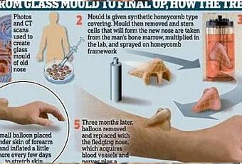 Los científicos explicaron que paraobtener una nariz para este pacientetuvieron que crear un molde de la antigua. A continuación este molde fue rociado con un material sintético que sirvió para que se asentaran las células madre.