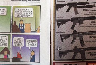 Las tiras cómicas en un periódico de USA, y al lado los anuncios de armas. Normal, ¿no?