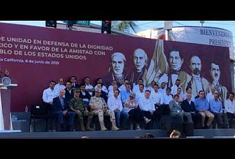 Tijuana, BC.- Arropado por gobernadores de los distintos Estados de la república mexicana, representantes del poder legislativo, lídeyres políticos, luchadores sociales y ciudadanía en general, a distancia y en vivo; el presidente de México, Andrés Manuel López Obrador, encabezó el "Acto de unidad en defensa de la dignidad nacional y en favor de la amistad con Estados Unidos"; evento que tuvo como escenario la ciudad fronteriza de Tijuana en Baja California norte.