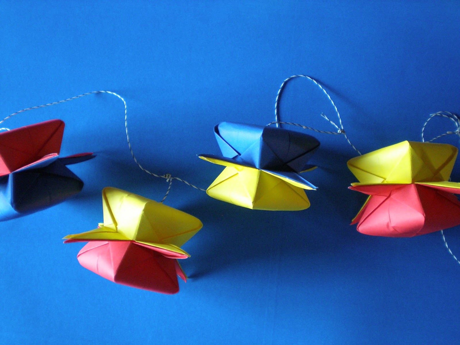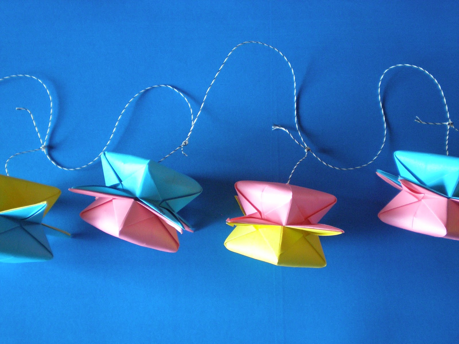 Para la decoración del lugar hice guirnaldas usando estos mismos colores, que cuelgan de un lado al otro del salón.