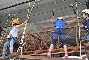 El circuito de aventuras comienza por una tirolina y un circuito de aventuras, que reviste cierta dificultad, a varios metros de altura, pero es súper divertido!!.