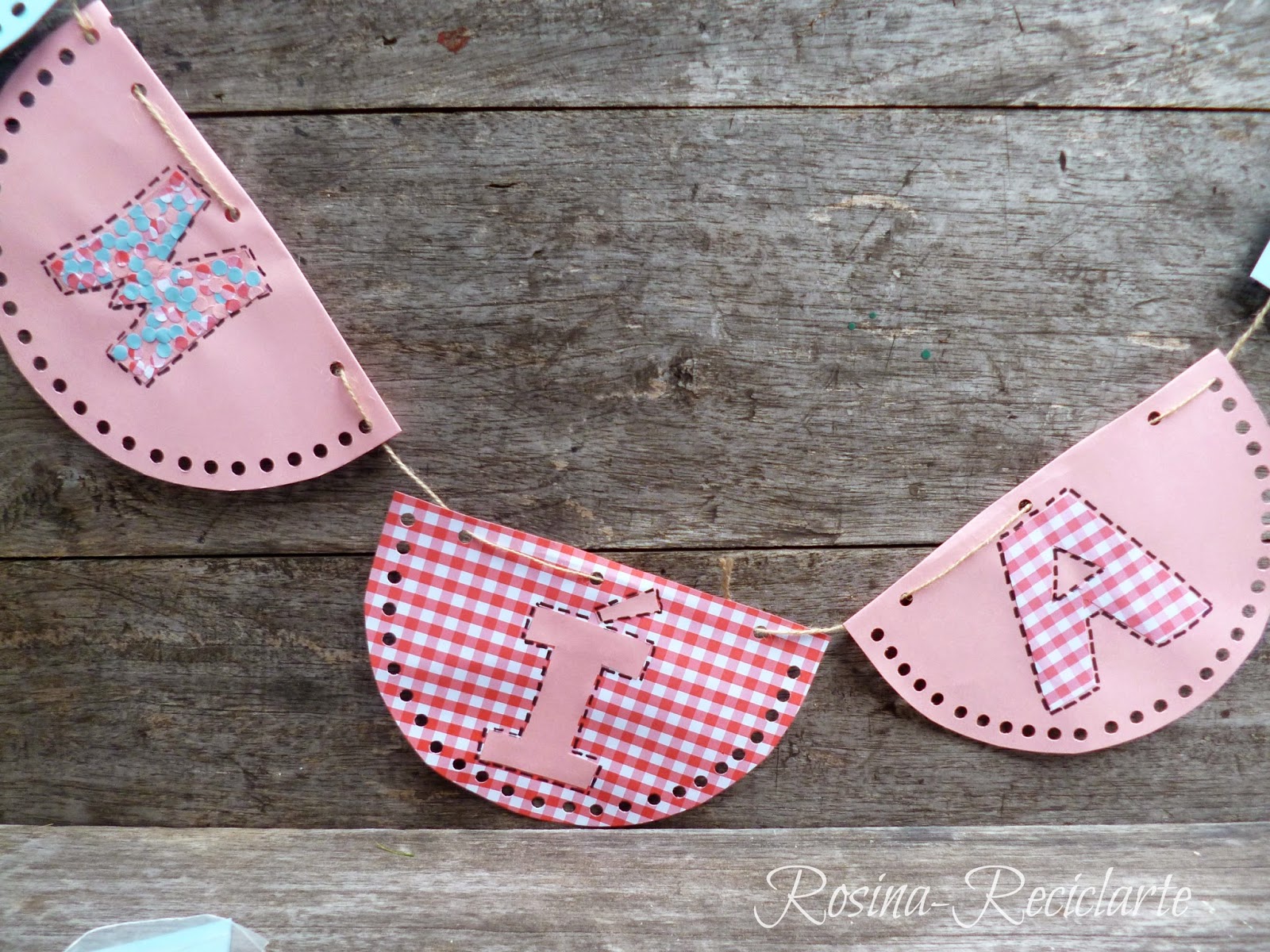 No hay cumpleaños sin guirnaldas, así que con la misma cartulina de los chupetines armé una.