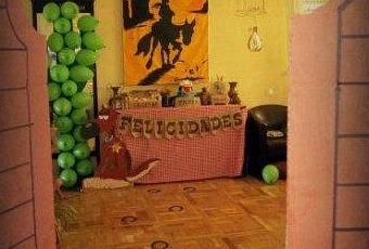 Pasando al Saloon, nos recibirá una gran mesa de poker, con nuestro amigo Lucky Luke (fotomontaje del cumpleañero)