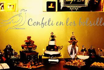 La mesa de dulces era presidida por una tarta de tres pisos (de fresa y chocolate) con la figura de la homenajeada capitaneando.