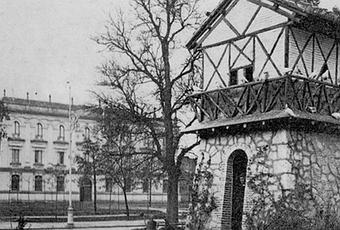 El edificio del fondo, tras el palomar de los Jardinillos de la estación, es el Convento dominicano de San Pablo de Palencia, que antes fuera Palacio de Justicia, con dependencias carcelarias. Aledaño a la iglesia, en su primitiva historia, hubo otro fundado por Santo Domingo, que también albergó a santos y sabios.