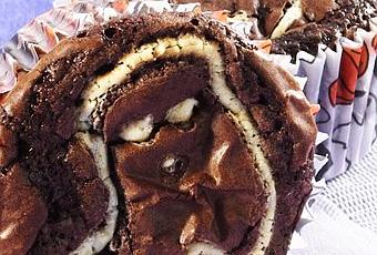 Caliente el horno a 176°C. Coloque moldes de papel enmantequillados en la bandeja para muffins. Hacer la mezcla para brownie como se indica en la caja, revolver con los chisps de chocolate oscuro. Divida la masa en partes iguales entre los moldes.