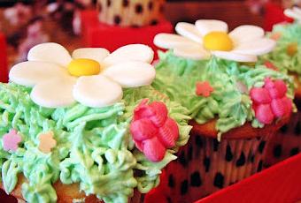 Decoramos con flores y mariposas hechas con fondant y unos sprinkles de florecillas.