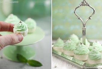 Mirad lo maravillosos que son estos mini cupcakes, son tan monos que da pena comérselos. Un color verde menta precioso! muy elegantes! Una buena opción para una baby shower o para un bautizo. Los hemos visto en el blog www.sprinklebakes.com, solo hay que ver las imágenes para poder apreciar lo delicados que son.
