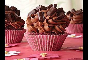 Decorar con el frosting los cupcakes y adornar con trozos de chocolate.