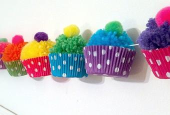 Todo lo que necesitamos es lana de varios colores, porta cupcakes y cordón.