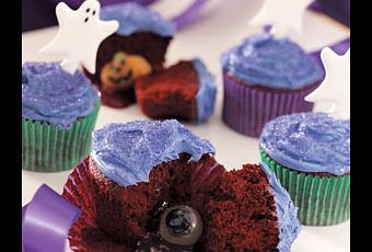 Rellene los moldes de muffins que anteriormente forramos con moldes de papel enmantequillados con la mezcla hasta 2/3 de su capacidad. Hornear a 176°C durante 18-22 minutos o hasta que al insertar un palillo cerca del centro, éste salga limpio. Deje enfriar durante 10 minutos antes de retirar de los moldes a los bastidores de alambre que se enfríe completamente.