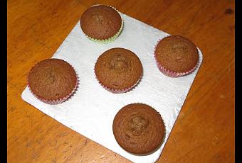 Ingredientes:- 150 gramos de chocolate.- 150 gramos de mantequilla sin sal.- 6 huevos.- 150 gramos de azúcar moreno.- 210 gramos de harina de repostería.- 75 gramos de nueces picadas.Elaboración:Fundimos el chocolate con la mantequilla a trozos en el microondas, ir parando de vez en cuando para que no se quemé. Mientras en un bol batimos los huevos con el azúcar hasta que blanqueé.Incorporamos el chocolate con la mantequilla y seguimos batiendo, una vez que esta parte está mezclada echamos la harina tamizada. Una vez que está todo mezclado añadimos las nueces. Repartimos la masa en las cápsulas de papel, 2/3 de su capacidad. Introducimos en el horno que tendremos precalentado durante 20 minutos a 180ºC. Sacamos, dejamos enfriar y ya están listos para degustar.