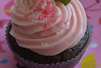 Con un descorazonador de manzanas hacemos un huequecito en los cupcakes que rellenamos con sirope de fresa. Tapamos con la tapita que habíamos retirado.