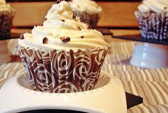 Frosting:Derretimos el chocolate al baño maria o microondas y reservamos. Se bate la mantequilla que tenemos a punto pomada junto con el azúcar tamizado. Una vez conseguida una masa homógena incorporamos el chocolate derretido que ya se nos ha enfriado. Y por último una mezcla de ron y leche de coco.Introducimos la crema en manga y decoramos los cupcakes ya frios.Espolvoreamos coco rallado y virutas de chocolate.