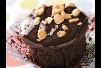 Coloque una cucharada colmada de ganache en la parte superior de cada cupcake, extender hacia los bordes. Espolvoree el maní tostado. Enfriar por 20 minutos o hasta que cuaje. Refrigere las sobras.