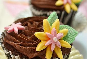 Un gran avance, sobre todo este último; y es que tengo que confesaros que yo era un pelín reacia a emplearlo porque me recordaba mucho no, demasiado, a la plastilina con la que jugábamos en el cole.Sin embargo, después de dejar prejuicios a un lado y animarme a usar fondant, tengo que deciros que es una experiencia ¡genial! Se trabaja muy bien con él y el resultado, creo, que ha sido bastante decente. Sobre todo para no haberlo tocado nunca.Pero lo mejor de estos cupcakes no son las flores. Ni mucho menos. Lo mejor es la esponjosidad de la masa, su sabor, su combinación con el relleno de naranja, y la suavidad y cremosidad del glaseado de chocolate. Eso sí es lo verdaderamente importante.