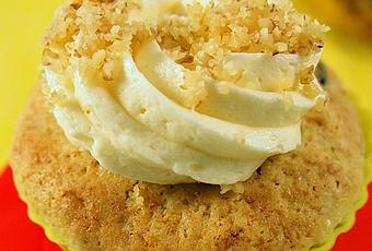 9.- Cuando estén del todo fríos, los decoramos con la buttercream. En este caso, he utilizado la boquilla 1M y después he espolvoreado nueces por encima. Y listos para comer!!