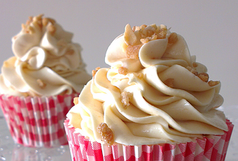 Así que volví de las vacaciones, y tenía ganas de hacer algún cupcake, que hacía muchísimo que no me comía uno. Vi que aún tenía la crema de cacahuete que me sobró de los whoopie pies ahí y me acordé que en el libro de Alma había una receta.... Así que lo siento compis del reto! Ya estoy en la número 19!! :-)
