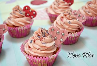 Como os decía unas líneas más arriba, la buttercream es muy dulce, pero le va genial a una masa de cupcake con tanta fruta y que resulta tan ligera. Por último, aunque a mí las fresas me parecen una fruta, de por sí, muy de San Valentín, para hacerlos aún más "sanvalentinescos" los decoré con unos corazones de fondant (Hay que ver cómo disfruto tiñendo y amasando fondant, ¡cómo relaja! ¡es como cuando jugaba con la plastilina en el cole!)