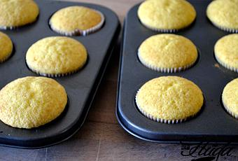 Precalentamos el horno a 180ºC, colocamos las capsulas en nuestro molde cupcake. Cogemos un bol y añadimos la mantequilla a temperatura ambiente y el azúcar, con ayuda de una batidora de varillas, batimos 3-4 minutos. Añadimos los huevos de uno en uno y seguimos batiendo, a continuación incorporamos el extracto de vainilla, el aceite y la leche. Por otro lado tamizamos la harina, la levadura y lo iremos incorporando a nuestra mezcla liquida, en este punto batiremos con la ayuda de una espátula o una varilla manual e iremos mezclando lentamente. Una vez lista nuestra mezcla, con ayuda de un saca bolas de helado, iremos rellenando nuestra capsulas hasta la mitad o 2/3, introducimos en el horno durante 20 minutos aproximada mente o hasta que estén hinchados y dorados, también podremos comprobar con un palillo si pinchamos uno y el palillo sale seco estarán listos, retiramos y dejamos enfriar.