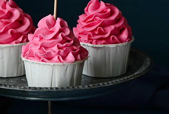 - Para preparar el glaseado, en un bol batimos la mantequilla, la leche y el icing sugar, con la ayuda de una batidora de varillas a velocidad máxima, hasta conseguir una mezcla suave y cremosa. Añadimos la frambuesa en pasta, el colorante rosa y volvemos a batir hasta que se integre por completo.