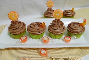 Hemos querido decorarlos un poco más con unos caramelos y piruletas que hemos encontrado en forma de rodajas y gajos de naranja, pero también podemos confitar algunos gajos o trocitos de naranja y colocarlos sobre la cobertura.