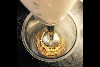 - La *pasta de turrón: Alma en la receta utiliza pasta de turrón, pero como yo no tengo y me ha sobrado mucho de las navidades, he hecho lo siguiente… he triturado el turrón (con un tenedor o una batidora) , esa pasta la he mezclado bien con la nata y ya está lista para utilizar.